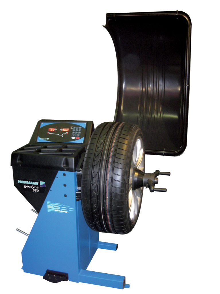 Балансировка Hofmann Geodyna 960 (стенд балансировочный) для легковых автомобилей, автоматический ввод расстояния от колеса до станка, LED дисплей, с большим защитным кожухом колеса.