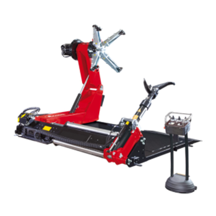 Автоматический шиномонтажный стенд для грузовых автомобилей и спецтехники с зажимом от 14” к 50”, специально разработанный, чтобы обращаться с бескамерными или камерными шинами грузовиков, автобусов, тракторов и спецтехники. Предназначен для работы с колесами грузовиков, автобусов, тракторов и строительной техники (с камерными и безкамерными шинами). Двухскоростное вращение в двух направлениях. Двухскоростное автоматическое перемещение каретки синхронизируется с двухскоростным движением вращения самозажимного патрона. Автоматический подъем рычага и автоматическое вращение монтажных приспособлений. Новая консоль управления отражает внимание к эргономике и функциональности. Удобные элементы управления и интуитивно понятный дизайн облегчают работу. Стандартно он оснащен радиосвязью. Колеса у основания рамы облегчают перемещение с одной стороны колеса на другую во время работы.