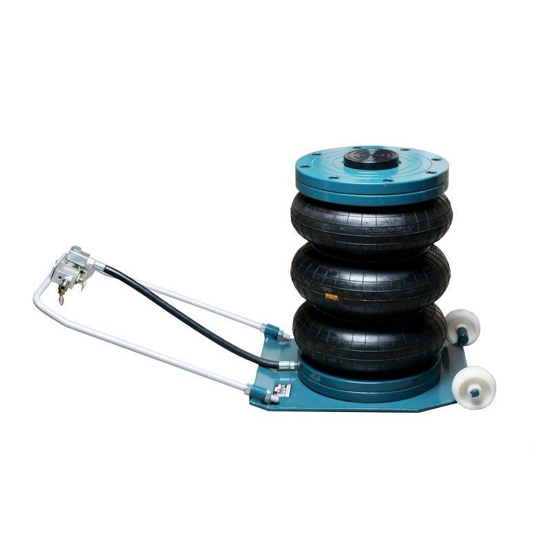 Двухсекционный пневматический домкрат Forsage F-2004-2 на тележке имеет грузоподъемность 2.2 тонны и высоту подъема до 385 мм.