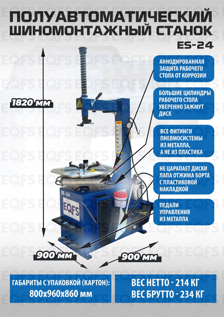 Особенности конструкции полуавтоматического шиномонтажного станка ES-24: