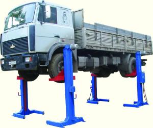 Подъем за поддомкратные площадки автобусов и троллейбусов-сцепок общей массой до 24 тонн. Подъемник имеет шесть стоек. Подъемник оснащен концевыми выключателями нажимного действия ограничивающими ход каретки вверх и вниз и многоуровневой системой безопасности. По отдельному заказу комплектуется установочными рамами.