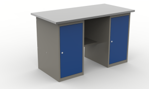 Верстак двухтумбовый Ferrum с прекрасным глянцевым порошковым покрытием, обеспечивающим простоту при чистке. Дверцы легко переставляются для открывания в нужную сторону.